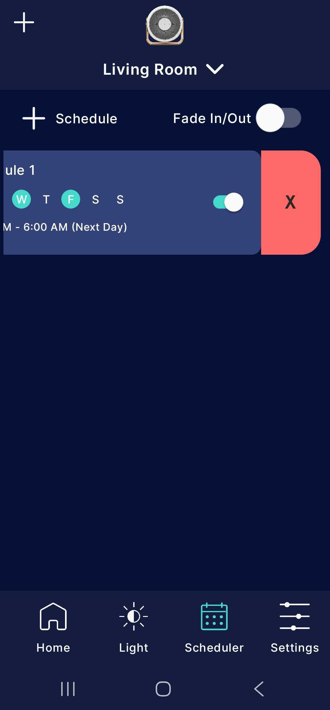 You can delete a schedule from the app by holding on the right side of the schedule and sliding it to the left. A red box with an X will pop up. Hit the X and your schedule will delete.